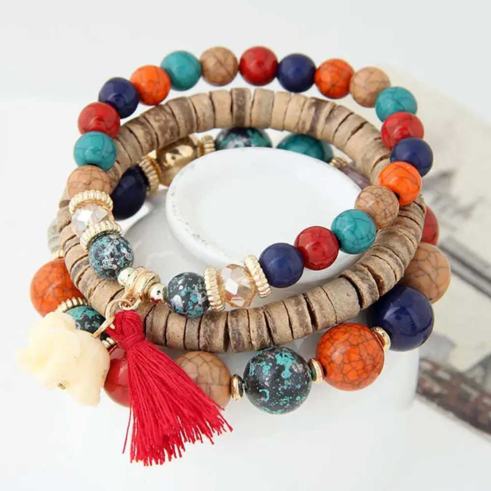 Bracelet Boheme Femme Chic Bijoux Fantaisie en Perles de Bois