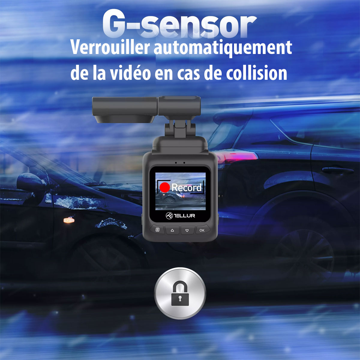 Le capteur G intégré réagit aux changements brusques tels qu’un accident, déclenchant l’enregistrement et verrouillant le fichier pour une protection instantanée et inégalée.