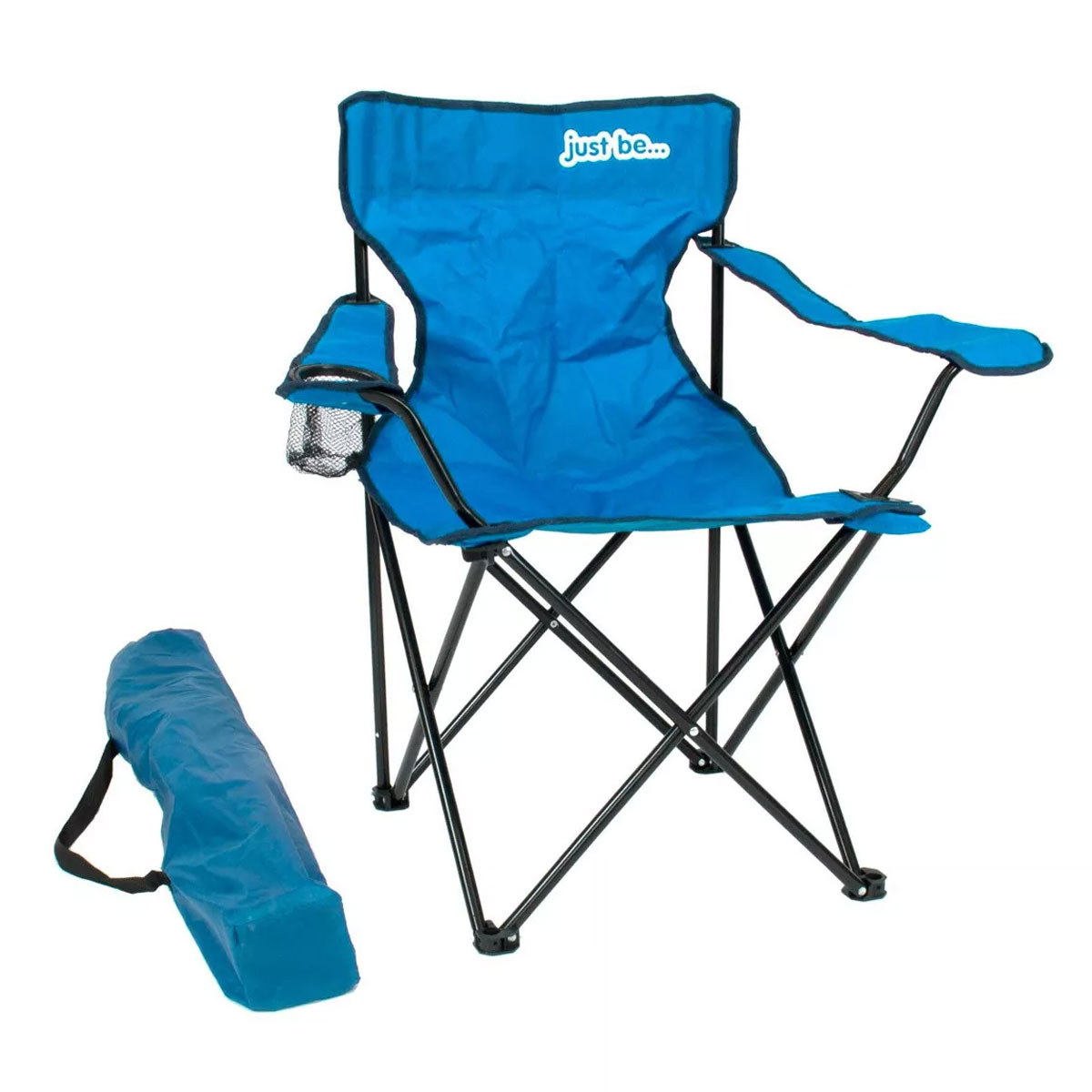 Chaise de camping bleu royal légère : légère, robuste, pliable avec sac de transport et porte-gobelet. Idéale pour festivals, plage, jardin, pêche.