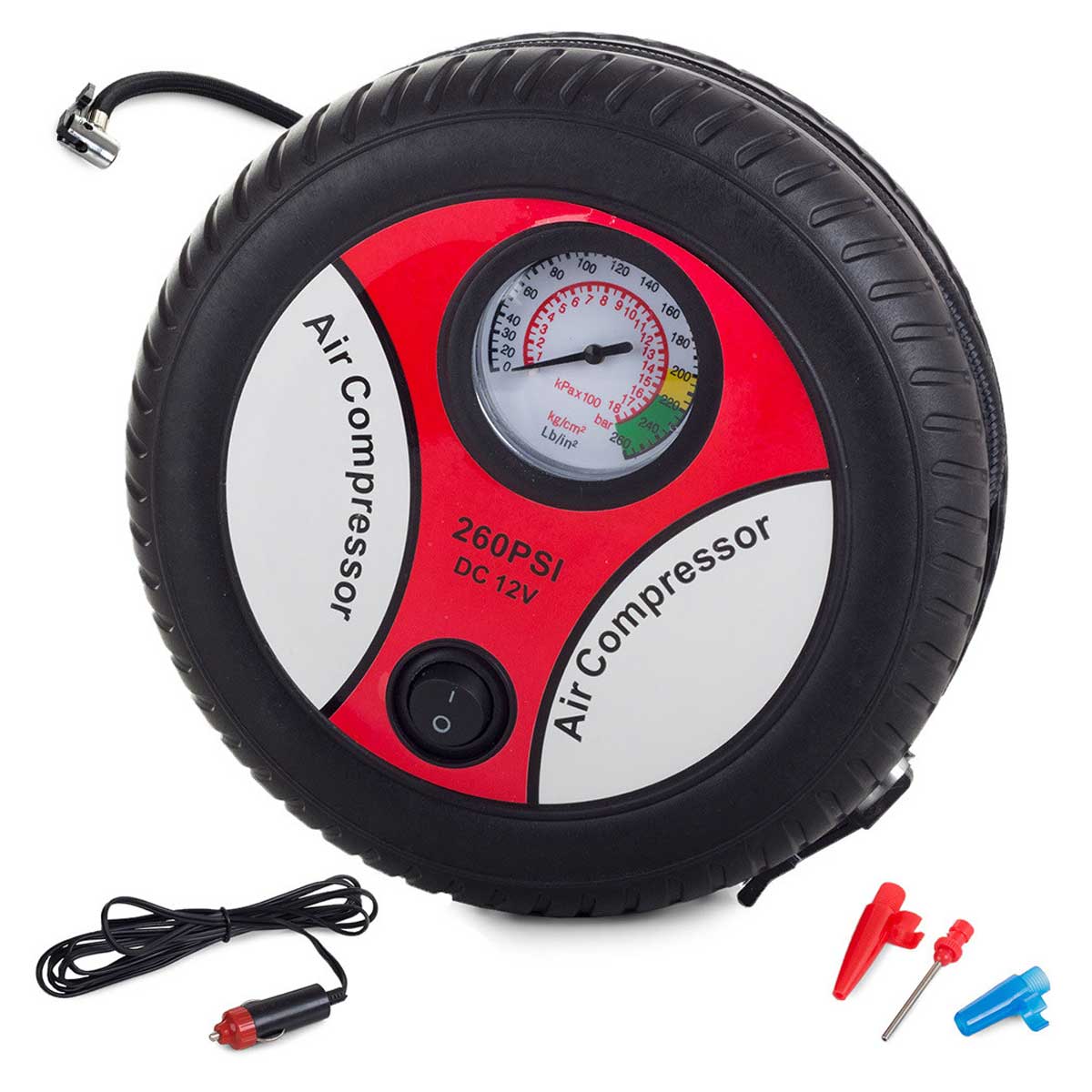 Compresseur Voiture 12V avec Écran LCD est l’outil idéal pour maintenir vos pneus de voiture, vélo, matelas pneumatique, piscines et bien plus encore à la pression optimale. Sa conception portable en forme de roue et sa capacité de 18 bars le rendent polyvalent pour diverses applications, du camping aux urgences sur la route.