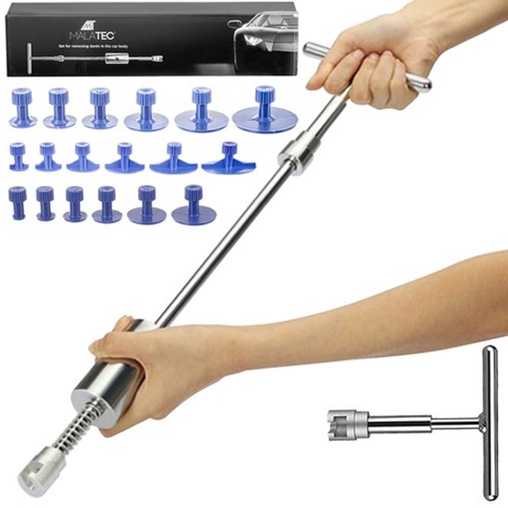 L’application n’endommagera pas la peinture grâce à des adaptateurs souples, mais durables, l’effet débosselage est immédiat. Le produit ne laisse aucune trace, jusqu’à 18 adaptateurs différents avec une forme spécialement profilée. Ce kit est utile aussi pour réparer les bosses sur des réfrigérateurs, des machines à laver, des portes et autres surfaces en tôle.
