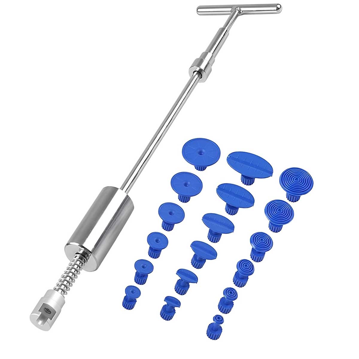 Débarrassez-vous de ces coups et bosses gênantes causées par des collisions mineures, des dommages de stationnement ou des coups de pied grâce à notre kit de débosselage ! Ce produit facile à utiliser convient aussi bien aux amateurs qu’aux professionnels. Gagnez du temps, de l’argent et de l’énergie en obtenant des résultats immédiats sans laisser de traces sur la peinture en quelques secondes, tout cela grâce au marteau extracteur à inertie et à la ventouse inclus dans ce kit. Pourquoi attendre ? Obtenez une carrosserie parfaite dès maintenant !