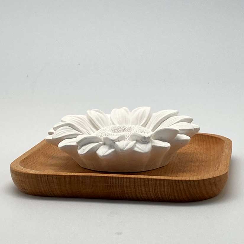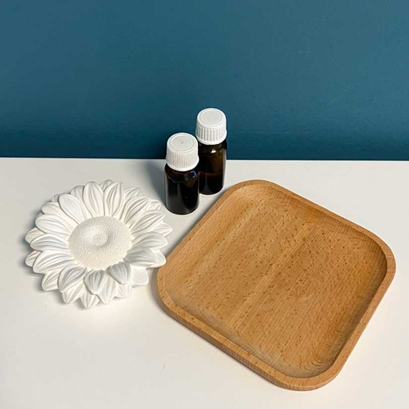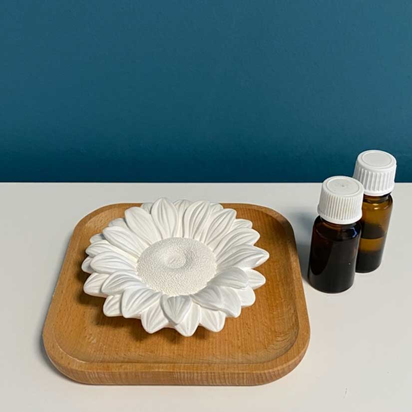 Versez quelques goutes d’huile essentielle de votre choix au centre de la fleur. Posez la fleur sur le support en bois et laisser absorber l’huile essentielle. Placez ensuite le diffuseur et son support en bois sur un meuble dans votre maison.