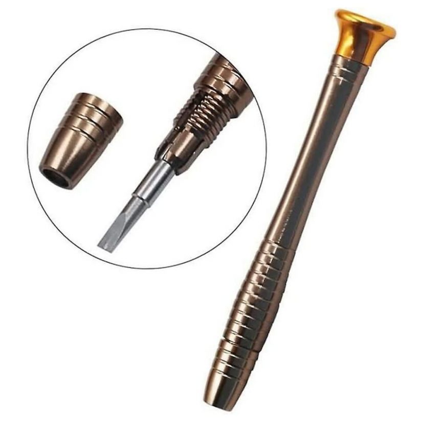 Les tournevis de ce kit sont disponibles en différents types de têtes de broches, notamment les têtes carrées, en forme de Y, croisées, droites, en fleur de prunier, hexagonales, étoiles et en forme de riz. Il y a aussi différents types de jeux de tournevis disponibles, spécifiquement plats, Phillips et autres.