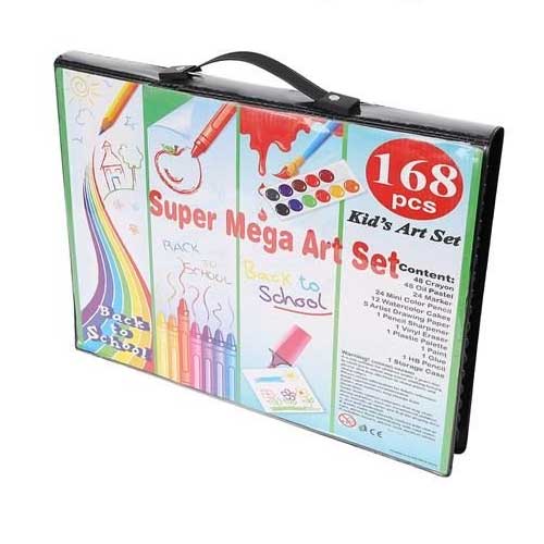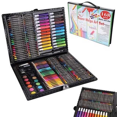168 ÉLÉMENTS – Avec un vaste choix de 24 crayons, 24 marqueurs, 48 crayons à l’huile, 48 crayons de cire, 12 aquarelles, un taille-crayon, de la colle, un cache-cernes, une gomme, des feuilles A4, nous pouvons facilement créer le plus exquis, créatif et oeuvres originales.