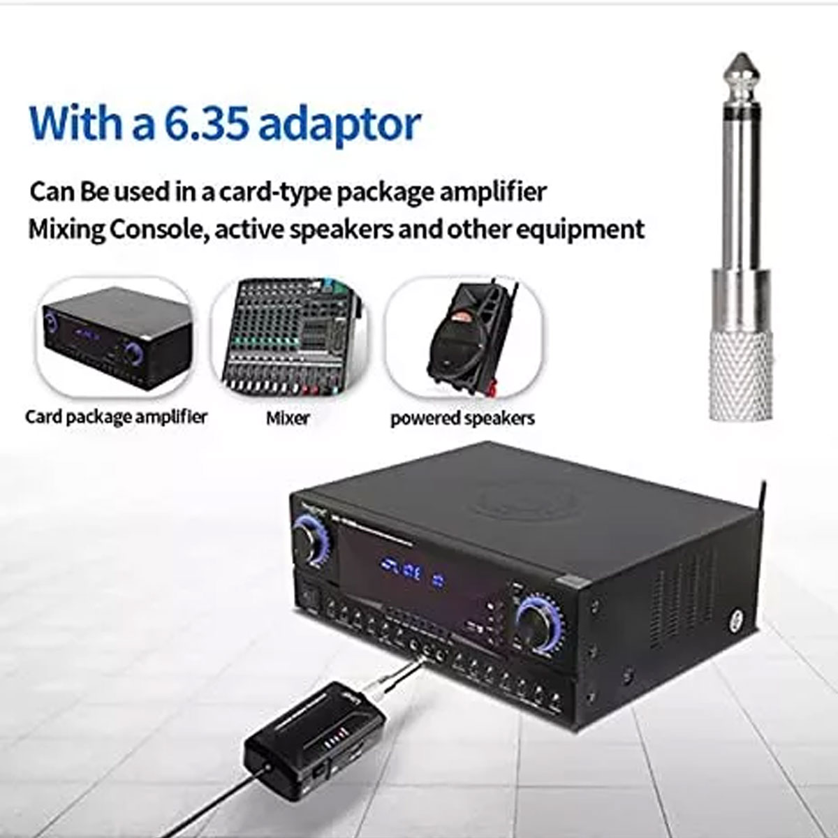 Ce système est compatible avec divers équipements audio, notamment les consoles de mixage, les enceintes, les systèmes karaoké, les smartphones et les appareils photo reflex. La sortie 6,35 mm facilite la connexion avec de nombreux dispositifs.