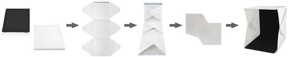 Le mini studio photo portable a été spécialement conçu pour être aisément transportable et ranger. Après utilisation, il vous suffit de le plier dans sa forme compacte (23x22x2 cm) et de le glisser dans votre sac ou votre valise. Son poids léger de 220 g facilite également son transport.