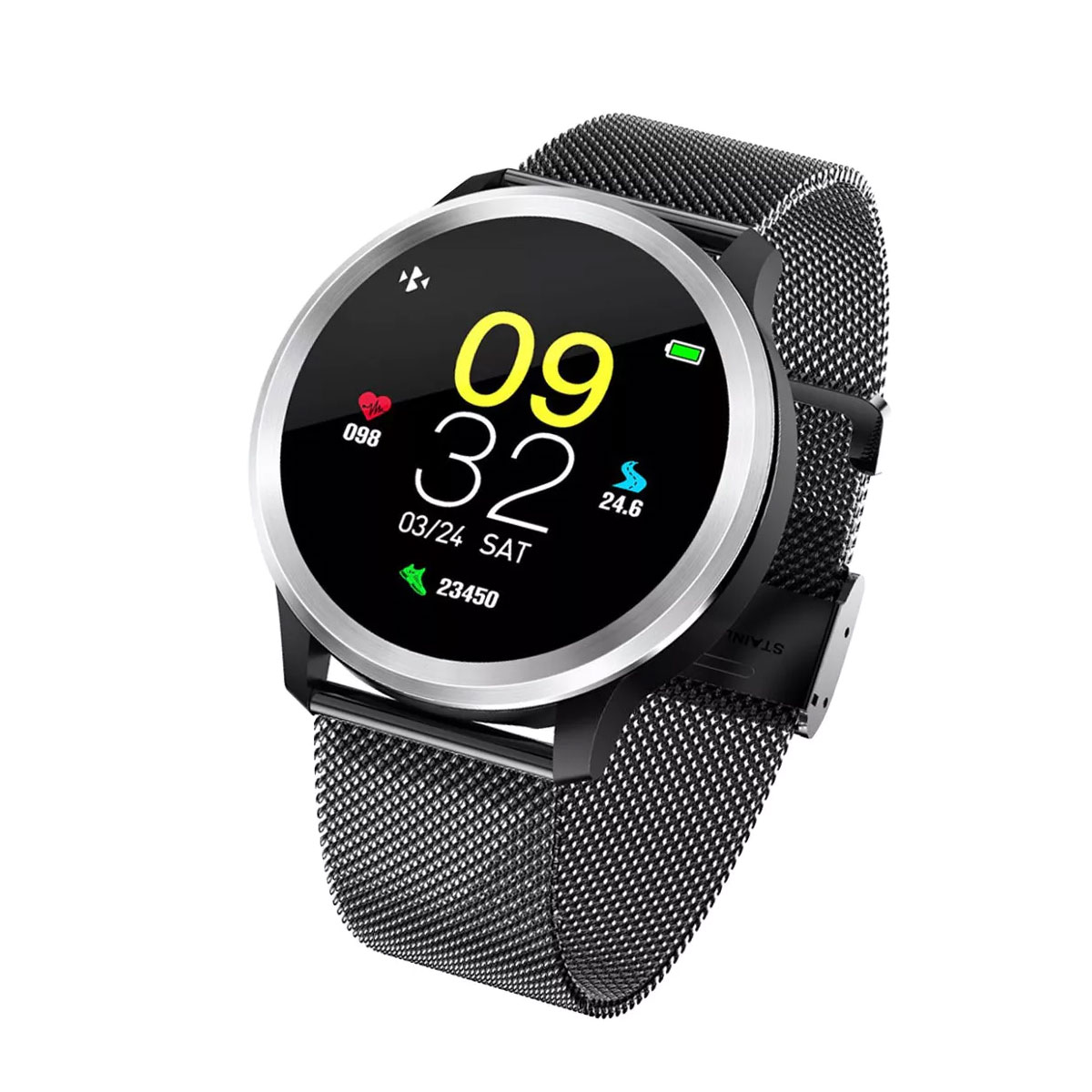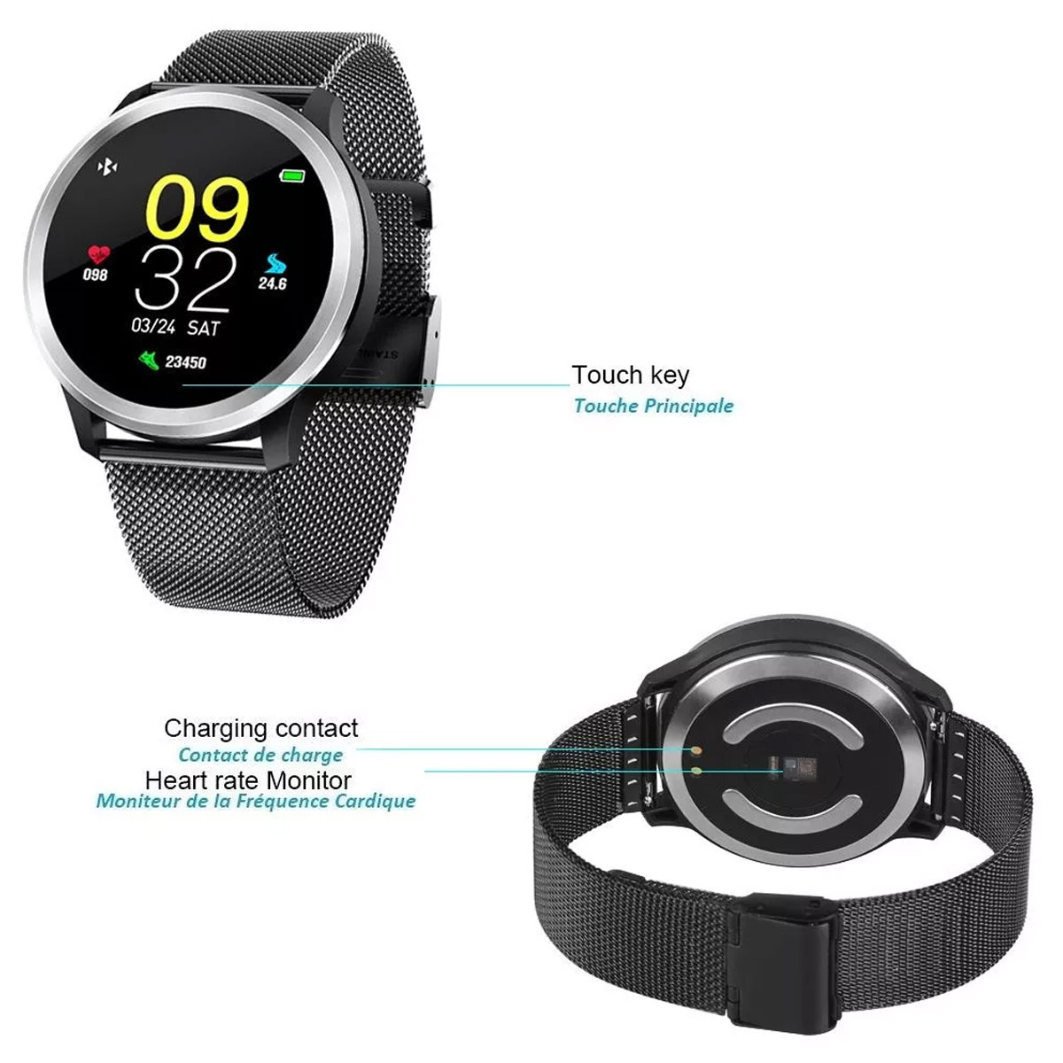 Avec son bracelet en maille milanaise noire et son interface élégante, cette montre est non seulement fonctionnelle mais aussi stylée. Elle s’adapte à toutes les occasions, que ce soit lors d’une séance de sport ou d’une sortie entre amis. Le design moderne vous permettra de vous démarquer tout en prenant soin de votre santé. Qui a dit que le suivi de la santé ne pouvait pas être à la mode ?