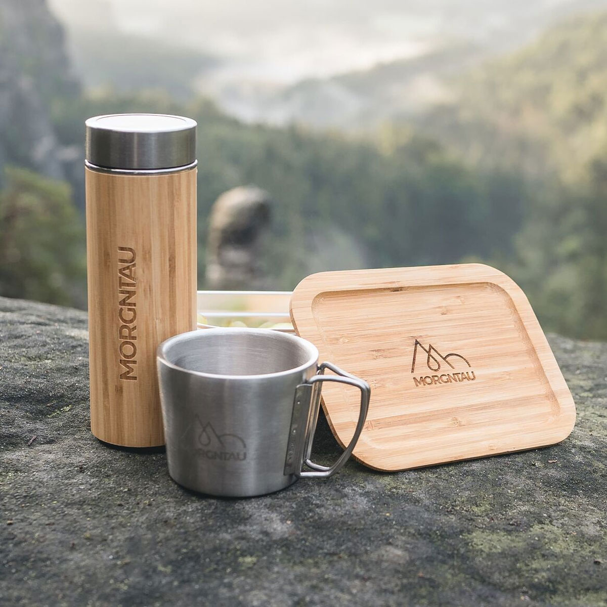 Pack pique-nique écoresponsables en bambou et acier inoxydable pour globe-trotters