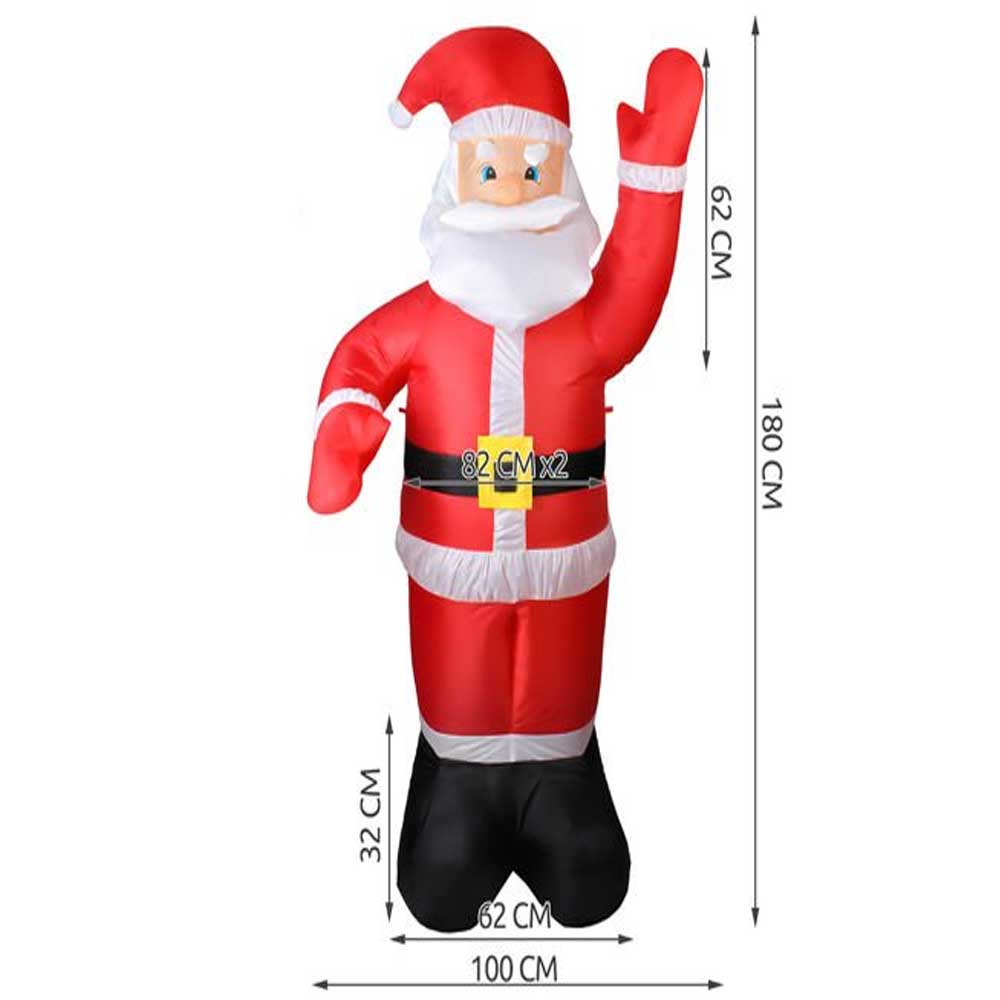 Entrez dans l’ esprit de Noël et ajoutez de la joie et de la couleur de Noël à la saison des fêtes avec ce Père Noël gonflables saisonniers colorés et amusants. Debout à une hauteur massive de 180 cm, cette décoration de Noël gonflable présente un Père Noël agitant, enflammée ! Ce design adorable et époustouflant fera tomber les enfants amoureux et vous aussi !