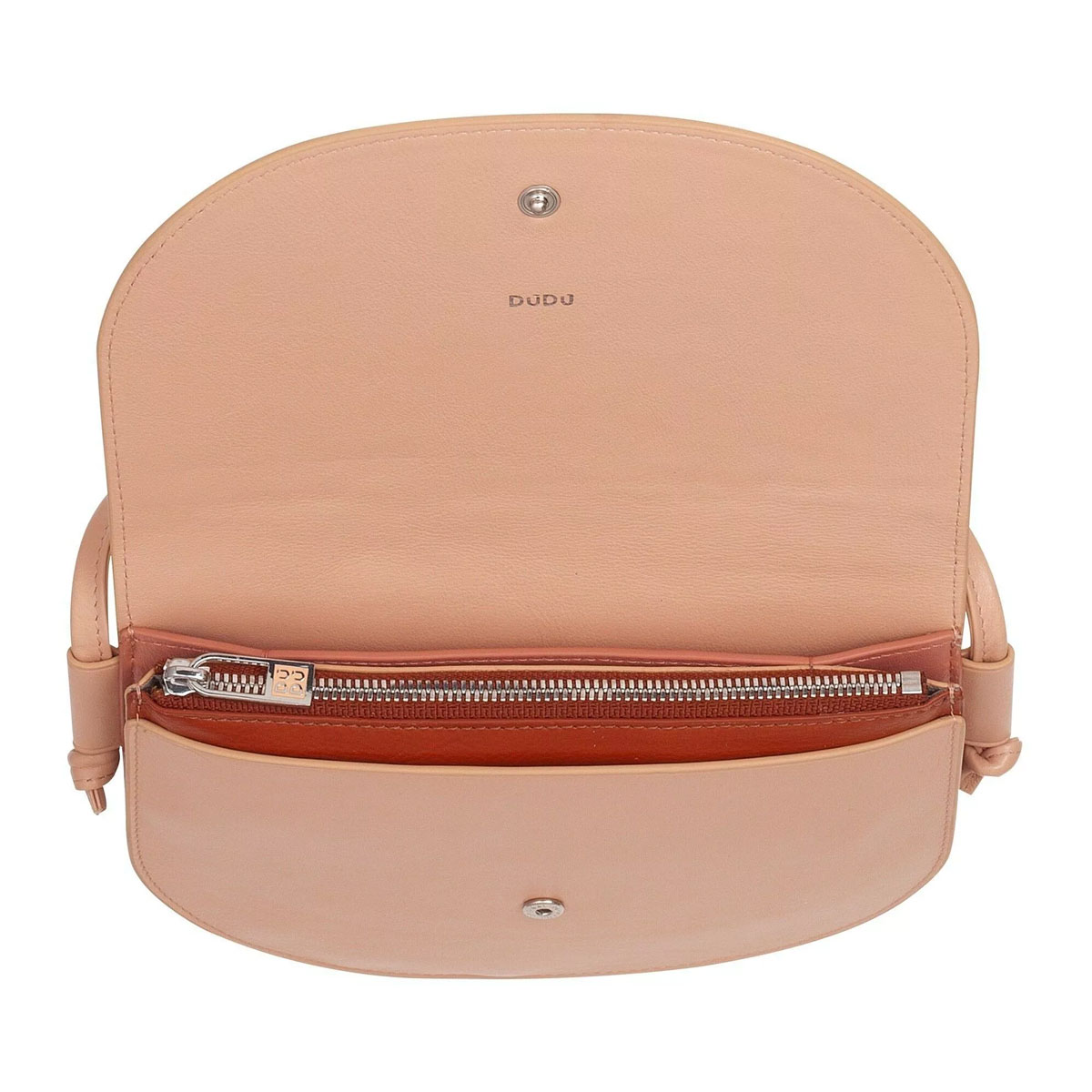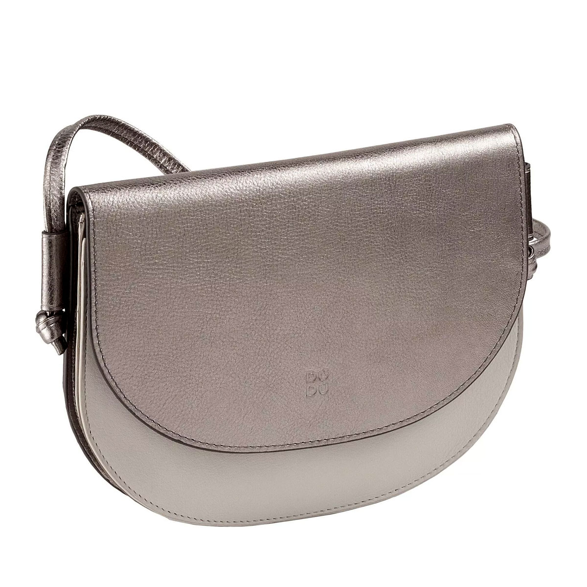 Petit sac à bandoulière pour femme en cuir véritable avec bandoulière réglable. Design mince et compact avec rabat.