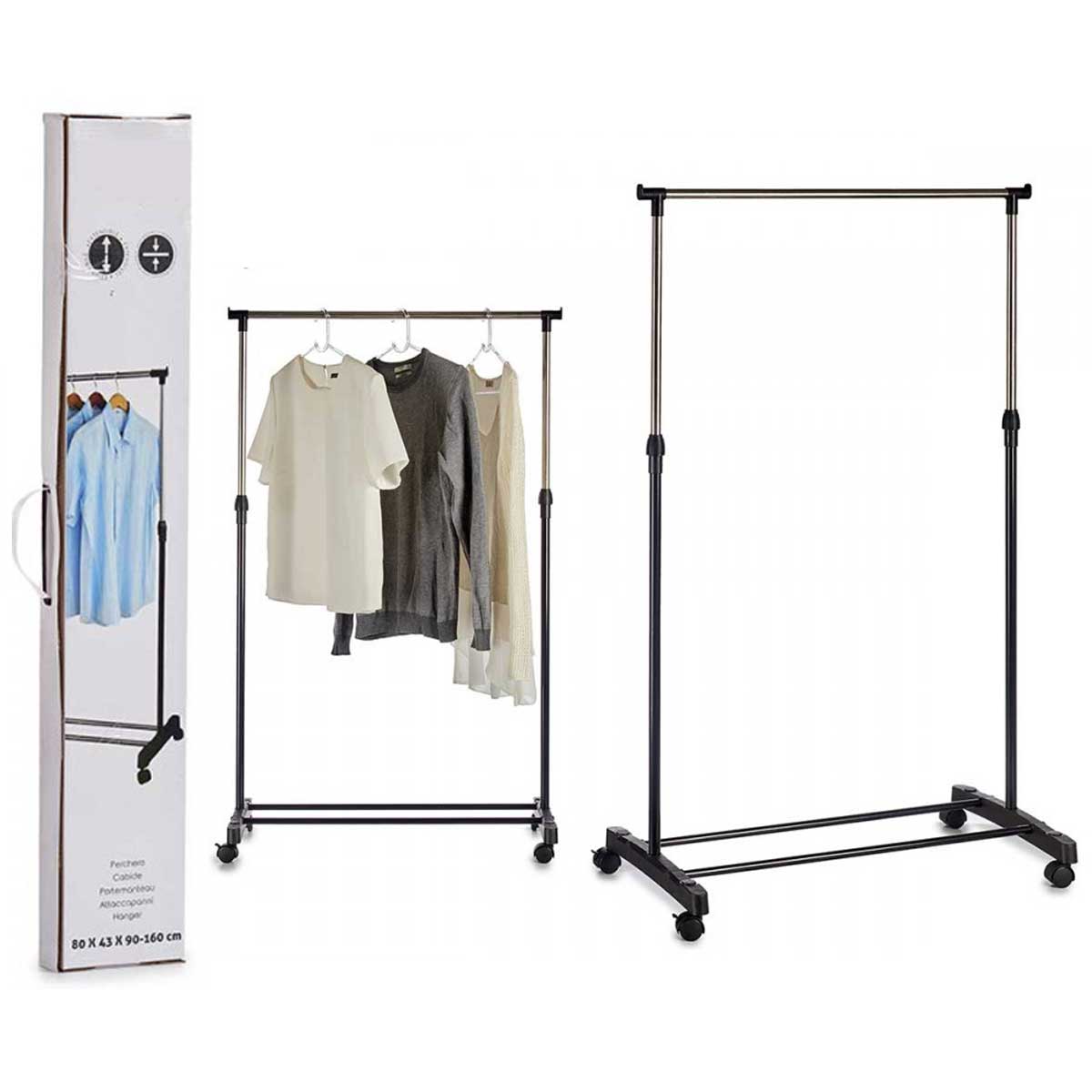 Porte-Manteau avec 4 roulettes simple en Métal – Noir-Argenté