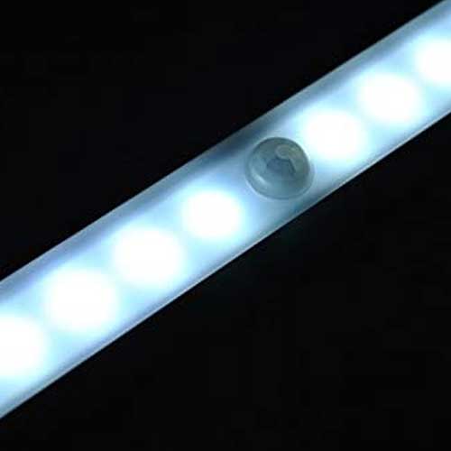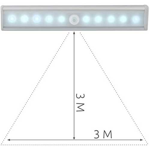 La réglette LED de placard avec détecteur, une barre automatique composé de 10 leds avec détecteur de mouvement et capteur crépusculaire intégré. Il fonctionne parfaitement pour l’éclairage du couloir, salle de bains, sous-sol, intérieur d’une armoire, escalier, étagères, un tiroir ou un lit.