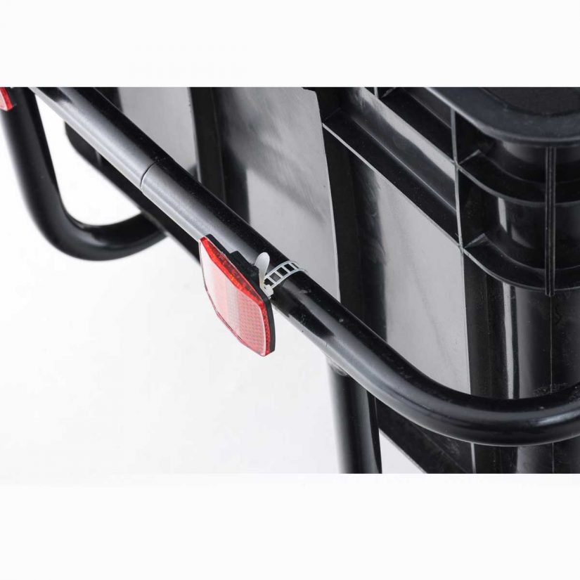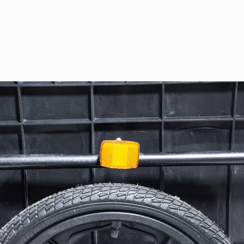 Fabriquée avec un cadre en tubes d’acier solide, cette remorque à vélo dispose de six réflecteurs pour une sécurité de transport accrue. Avec une capacité maximale de 40 kg comme chariot de vélo et 60 kg comme chariot à main, cette remorque est adaptée à toutes vos exigences de transport.