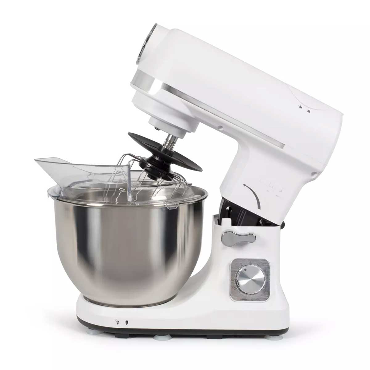 - Conception Pratique : Le couvercle anti-éclaboussures avec ouverture facilite l’ajout d’ingrédients pendant le fonctionnement. Le mouvement planétaire assure un mélange homogène et optimal de vos préparations tandis que les pieds antidérapants garantissent une stabilité parfaite sur votre plan de travail.