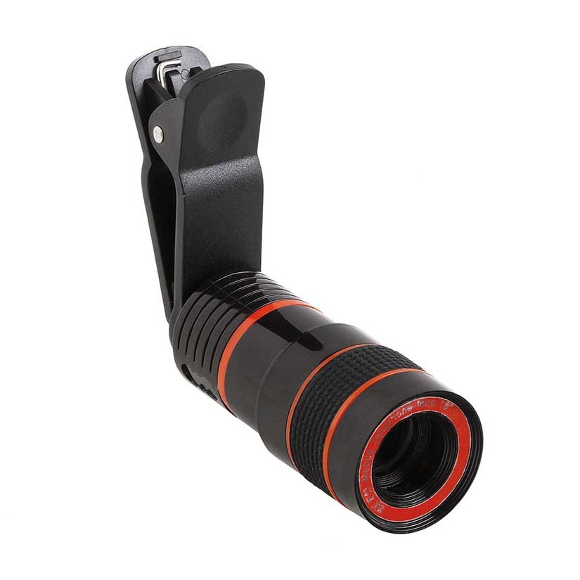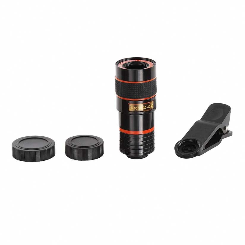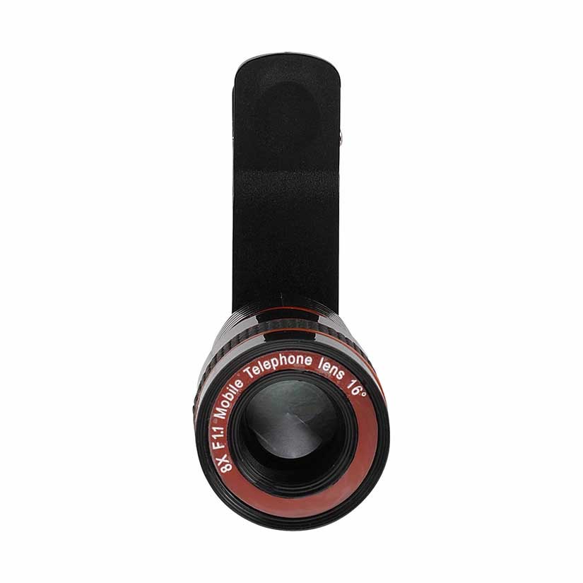 Téléobjectif pour Smartphone. Grossissement 8x. Idéal pour prendre en photo des sujets éloignés sans perte de qualité. Clip universel. Chiffon microfibre inclus