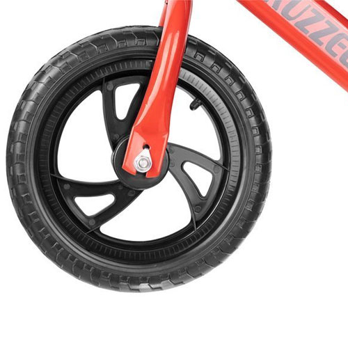 Le vélo sans pédale draisienne est équipé de pneus en mousse EVA ultra-légers. Leur grand avantage est une résistance, une légèreté et une résistance à la perforation très élevée. De plus, les roues n’ont pas besoin d’être pompées.